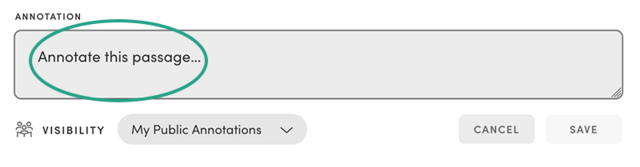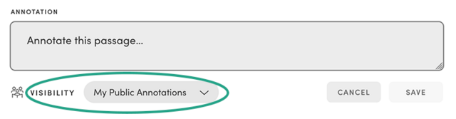 - IMPORTANT: You must set “VISIBILITY” to “My Public Annotations” for others to see your comments. If you have this set to “My Private Annotations,” you will be the only person able to see the comment.